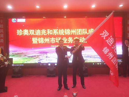 兆和系统市场营销总监陶学伟为锦州团队授旗