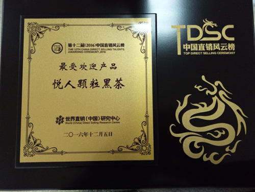 作为直销进入中国以来的第一个、同时也是最具权威性和影响力的综合性行业排行榜,直销风云榜至今已连续举办十二届,对中国直销业每年度的表现进行总结、评选和表彰,已经成为中国直销业的“奥斯卡典礼”,其权威、公信及强大的影响力得到了业界的高度肯定和广泛认同。 福瑞达医药集团在此次评选中深受赞誉,成功斩获“2016年度中国直销风云榜潜力企业”奖项;明星产品“悦人颗粒黑茶”荣膺“2016年度中国直销风云榜最受欢迎产品”殊荣。