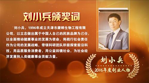 在本届创业大会上,康婷公司刘小兵董事长荣膺“2016年度创业人物”奖。刘小兵董事长以立志做出属于中国人自己的民族品牌为己任,以全面推动健康事业的发展为使命,二十年如一日,不忘初心,创新求变,带领专业的科研团队锐意进取,慎终如始,创立民族品牌,引领行业潮流。