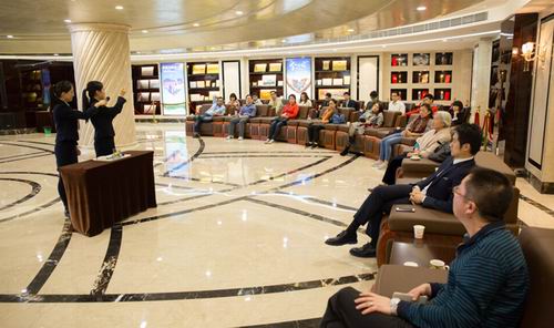 金日会员服务中心主管戴海楠在三楼荣誉展厅为大家介绍了金日的辉煌战绩和公益事迹,金日始终不忘初心,“来自社会,奉献社会”的企业理念引得众人点头称是。