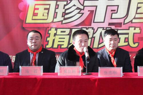 上午十点,“国珍书屋”捐赠活动正式拉开帷幕。在场少先队员为领导及嘉宾佩戴红领巾。首先杨林乡副书记致辞,他在致辞中提到“感谢新时代健康产业集团的爱心善举,能让贫困的孩子在寒冷的冬天感受到温暖,希望孩子们长大后也成为一名善良、乐于帮助他人的人。”呼兰区国珍健康生活馆馆长任凤玉代表当地的新时代人发言,她讲道自己就是农村孩子,从小就盼望有书读,长大了就希望能尽自己的微薄之力帮助贫困的孩子,未来会带领市场伙伴帮助更多的孩子。