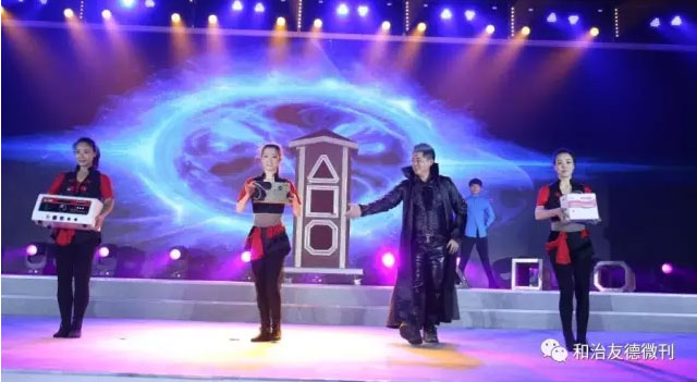 随着美轮美奂的新品秀精彩表演,新产品气血温通养生仪、酵粹植物蛋白固体饮料、卫生巾组合装终于揭开神秘面纱。