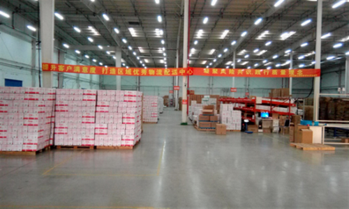 各物流区域配送中心的仓储及办公区域悬挂活动横幅及标语
