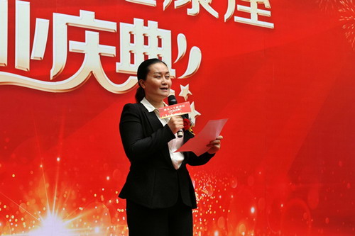 星河置业集团常务副总裁周素萍在开业庆典上讲话