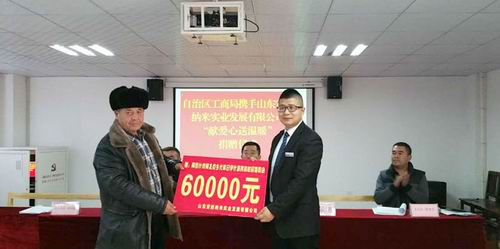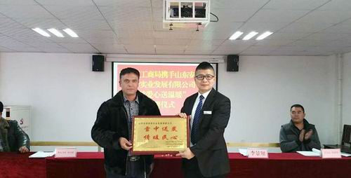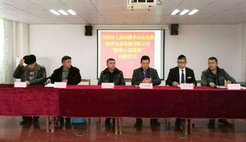 捐赠仪式上,吕凤栓书记首先代表自治区工商局驻村工作队对安然公司的到来表示欢迎,并对该村的情况和驻村工作进行了简介。安然新疆分公司负责人李景翔先生代表公司进行捐赠并发言。他表示,安然公司一直秉承“安然纳米,因爱永恒”的核心价值观,不断用公益事业回报社会。这次向新疆贫困地区的各族群众伸出援助之手,帮助村民度过一个温暖的冬天正是安然公司大爱的企业社会责任的体现。随后安然新疆分公司负责人李景翔代表公司进行了6万煤炭物资的捐赠。优库日伊什塔其村村长接受捐赠并回赠了安然公司”雪中送炭,情暖人心“的荣誉牌匾。