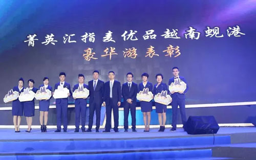 ▲北京易麦通电子商务有限公司副总裁陈功先生,副总裁李南先生、运营总监王威先生为豪华越南旅游获得者颁奖