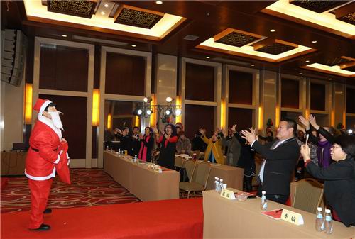 表彰会召开当天临近圣诞节,为了活跃气氛,更好的凝聚士气,大健康事业伙伴装扮成圣诞老人,为来宾们送上节日祝福。圣诞老人呆萌的造型、诙谐的动作配以会场各式圣诞装饰物,营造出了喜庆、浓郁的节日氛围。