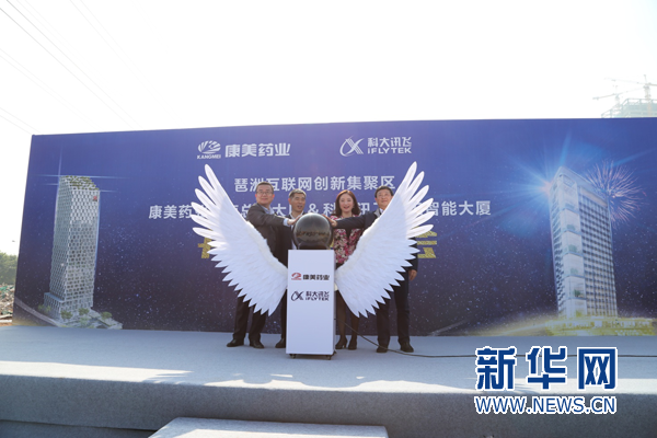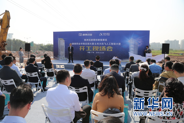 12月26日,在琶洲互联网创新集聚区,康美药业华南总部项目与科大讯飞人工智能大厦项目举行动工仪式。新华网发