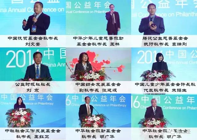 2016中国公益年会由《公益时报》联合中国扶贫基金会、中国儿童少年基金会、中华社会救助基金会、中华少年儿童慈善救助基金会、中国华侨公益基金会、中国妇女发展基金会、腾讯公益慈善基金会、河仁慈善基金会、中社社会工作发展基金会9家代表扶贫、妇女、儿童、社会救助、儿童救助、互联网、社会工作等领域的领军机构共同发起,共同召开的公益慈善事业重量级会议。会议在高度、专业度、权威性等方面代表了中国公益事业的发展水平。