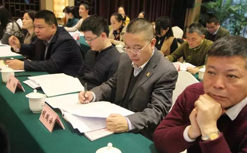 胡国安董事长翻阅会议资料