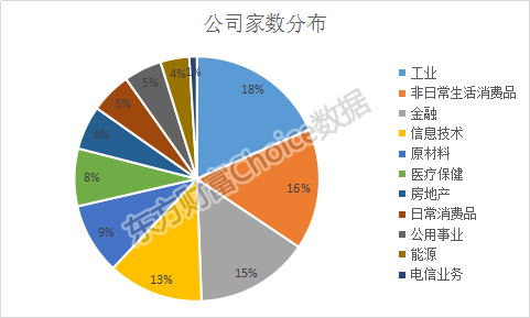 500强公司行业分布较广,数量也较为平均,工业、非日常生活消费、金融、信息技术的占比都在10%以上。