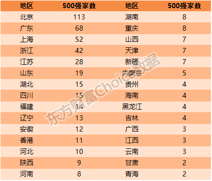 6、500强北京、广东、上海最多