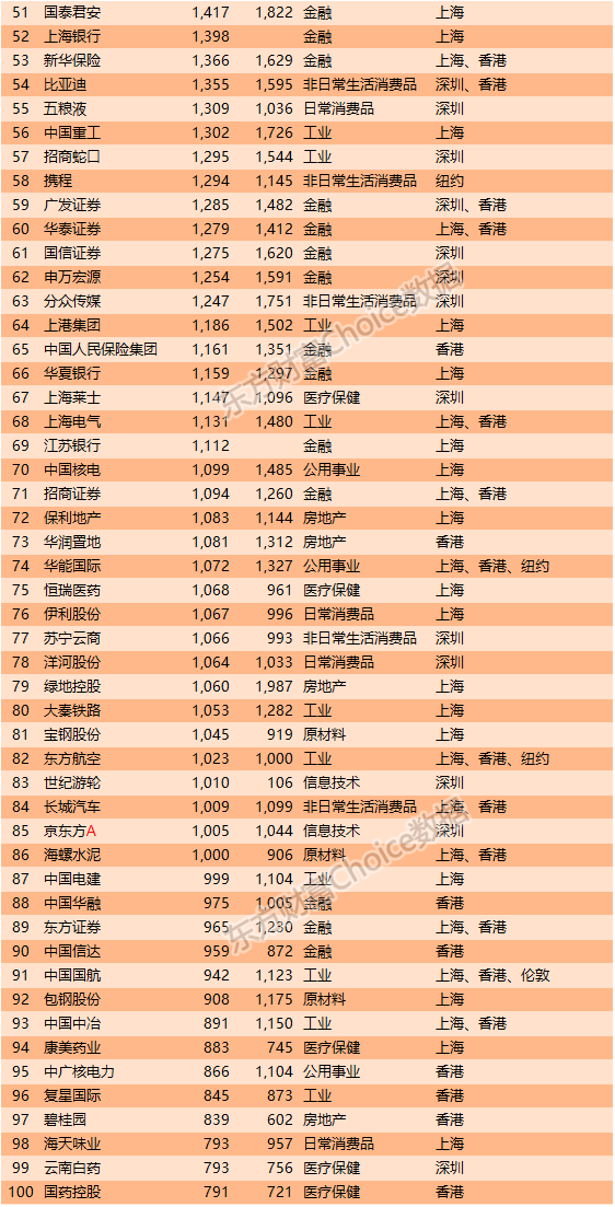 5、500强A股居多