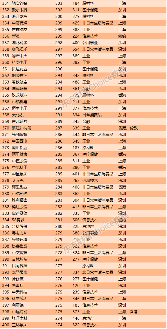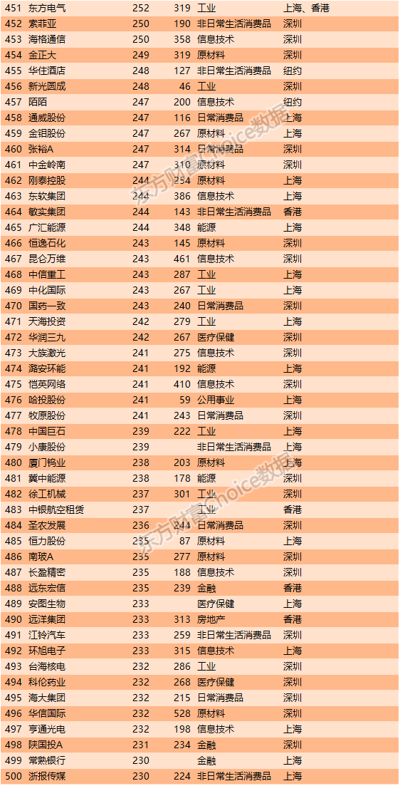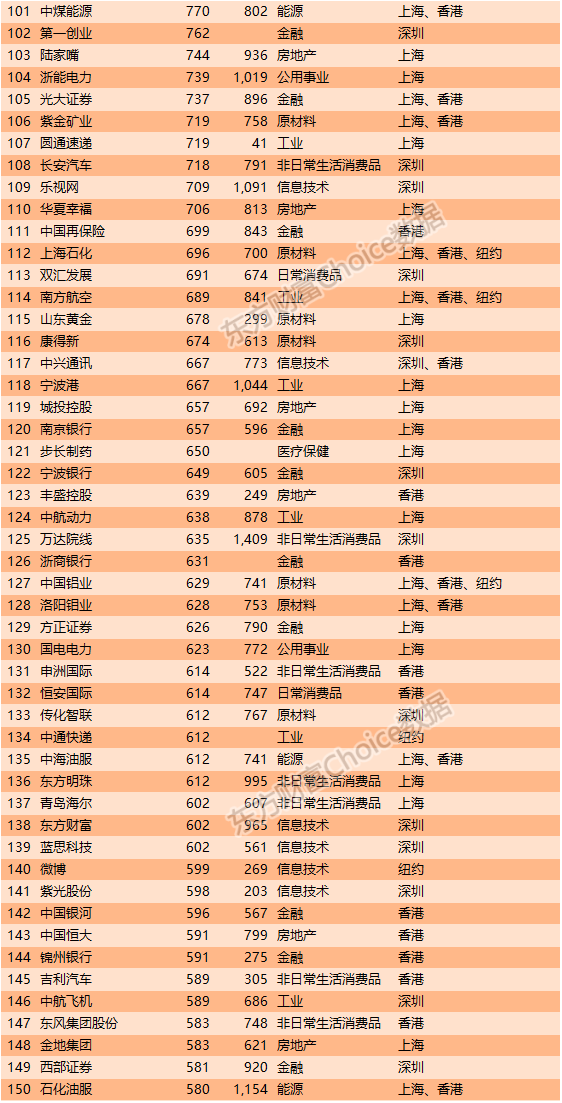 8、中国上市公司市值500强全榜单
