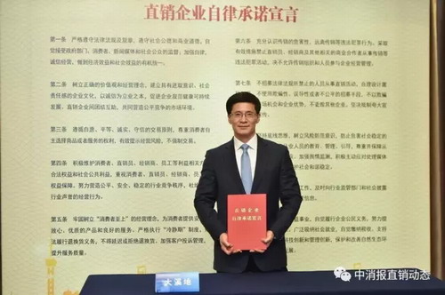 图为大溪地诺丽饮料(中国)有限公司总裁马春林先生在2016中国直销行业规范发展国际交流研讨会期间签署自律承诺宣言后留影。