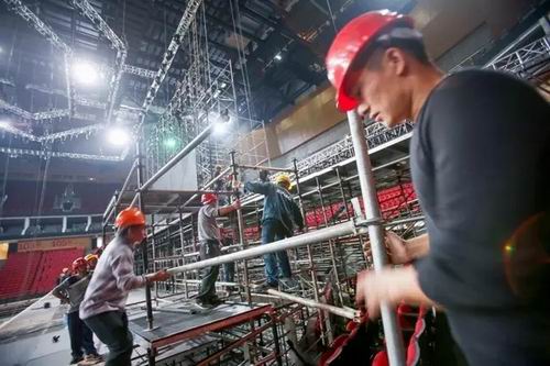 看,在会场内,工作人员正热火朝天地搭建舞台、布置灯光、安排座椅和摆放物资,力争在年会上让伙伴们能够有最“爽”的体验。