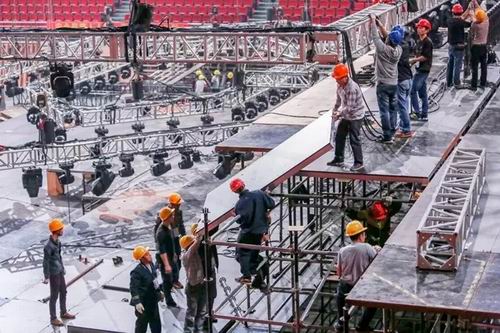 跟去年年会相比,今年的舞台更大也更高了!舞台高5.8米,分了四个层级,更是设置了9个升降梯,分布在舞台各个方位。到年会正式开始的时候,伙伴们可要睁大眼睛了,看看嘉宾们到底是从哪里出现在舞台上的。