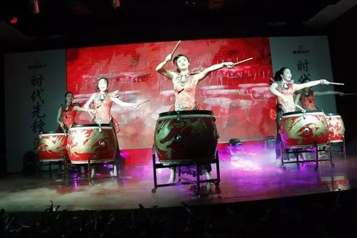 ▲《激情龙鼓》表演,配上动感的音乐,晚宴一开场就进入了高潮。