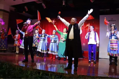 ▲演员们的表演也点燃了台下观众的热情,大家纷纷上台,一展才艺。全国市场发展委常委苏红宇现场连续演唱了《中国娃》、《365个祝福》,全国市场发展委常委贾振坤现场表演了《八段锦》,优秀业务伙伴王会明表演了《康美之恋手语舞》,全国市场发展委常委王建军演唱了歌曲《我的中国心》,全国市场发展委常委辛少华和吴秌颖等人伴舞,精彩的表演引爆了全场。