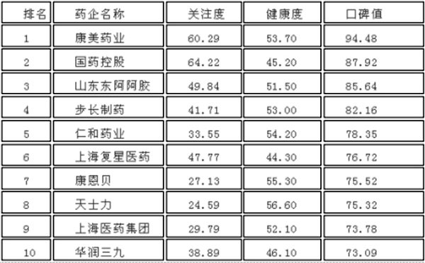 1月4日,《2016年度医药行业发展报告》公布了2016药企口碑榜榜单,康美药业凭借较高的市场关注度以及良好口碑,以网络信息传播力及健康度综合得分夺得口碑榜榜首。