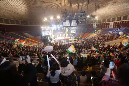 ”让我们一起飞翔,让我们一起分享“,全场天狮人一同唱响《让我们一起飞翔》,会场上空腾飞着两艘”让天狮真的因我更美丽“的飞艇,大家相聚在欢乐的海洋中,天空中落下许多五彩缤纷的气球,让我们拥抱不同梦想,挤爆梦想,实现梦想。感恩朋友的相伴,感恩天狮伟大的平台,感恩尊敬的李金元董事长,给予大家成长的机会。让我们相约2017,印度再相会!
