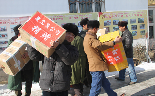 1月9日上午,康宝莱公司捐赠的近千件冬衣分发现场