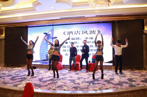 非常有特色的李瑞董事也亲自带领团队伙伴,一起演绎一个诚意十足的自嘲式小品《酒店风波》。以轻松文化带动产品推广销售,是浙商继《笑八仙》后的又一呈现。