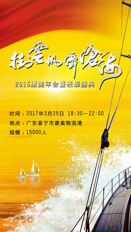“挂云帆 济沧海”——2016康美年会暨表彰盛典即将在2017年3月25日盛大开幕,为了展示经销商伙伴的风采,现开展《我要上年会》文艺节目征集活动,为年会增光添彩,具体如下: