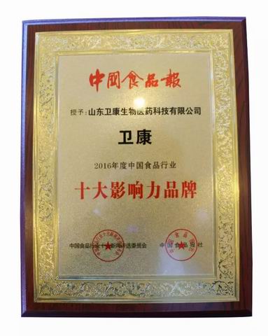 会议公布了“2016年度中国食品行业十大新闻、十大热点”,并举办了2016年度食品行业成就颁奖盛典。卫康生物集团应邀出席会议并荣获“2016年度中国食品行业十大影响力品牌”荣誉称号。