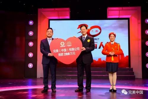 1月13日,“博爱欢乐传万家——中山市2017年(第30届)慈善万人行电视直播义演晚会”在中山广播电视台演播厅举行。完美公司现场捐赠善款200万元,这是完美连续第22年向中山市慈善万人行活动捐款,也是本届活动捐款金额最大的企业。