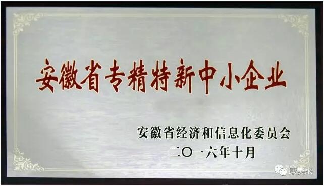 康美来荣膺安徽省 “安徽省专精特新中小企业”