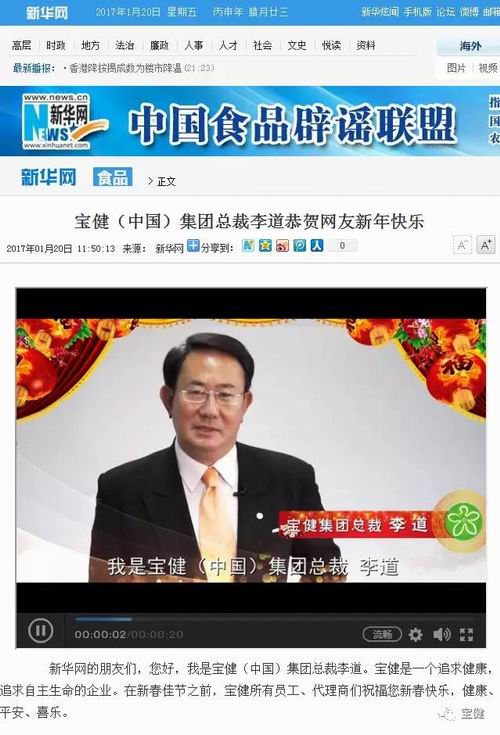 宝健(中国)集团总裁李道恭贺网友新年快乐