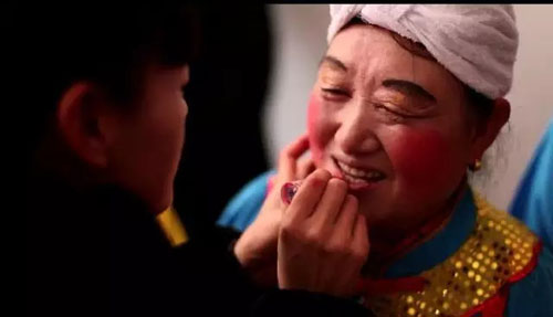这天一早,秧歌队的成员就开始化妆,搽脂抹粉,每个参与者都容光焕发,神采奕奕。