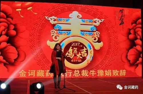金诃藏药执行总裁牛豫娟作了激动人心的致辞。回顾了充满挑战和艰辛的2016,并对过去的一年工作进行了全面的总结,充分肯定2016年取得的成绩,对全体金诃人的辛勤付出表示感谢,希望大家在下一年继续同心同德,努力拼搏,再铸新辉煌。