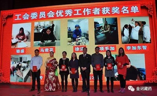 会上,工会副主席樊海岩先生宣读《金诃藏药股份有限公司关于表彰2016年度优秀工会委员的决定》、总工程师班玛才仁先生宣读了《金诃藏药股份有限公司生产事业部关于表彰2016年度先进个人及团队的决定》、《金诃藏药股份有限公司关于2016年度先进集体及个人的表彰通报》,并对先进个人、团队、先进集体等进行了颁奖。