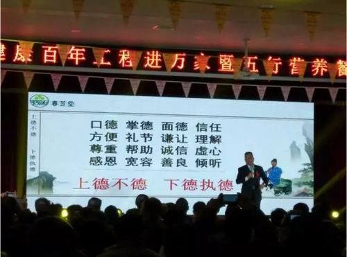 从11日下午至12日下午,曾总用一天半的时间为大家做中医养生训,以他的学识和特有的人格魅力赢得了参会者的认同。通过《中医养生师的修养》、《十二经络流注》等课程的讲解,参训人员对中医----这一传统文化的瑰宝有了全新的理解和认识;以前在展业过程中困惑的一些问题在这里找到了答案;对春芝堂大健康事业的未来充满信心。