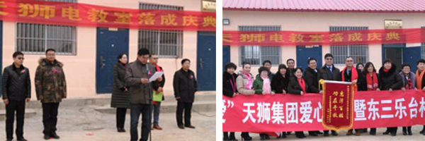 2017年1月17日,由唐山市工商局、唐山市玉田县唐自头镇政府、天狮集团,共同主办的东三乐台村“美丽乡村建设”暨“天狮电教室”捐赠仪式成功举行,天狮捐赠五万五千元,用于改善村民业余文化生活和新农村经济形势下知识技能学习培训环境。唐山市工商局、玉田县政府、县工商局、县农工委、唐自头镇相关领导,天狮大中华区相关领导和同事及天狮唐山地区志愿者参加了本次捐赠活动。