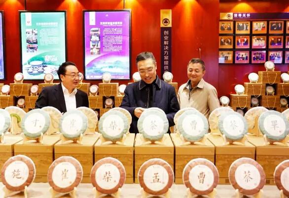 省国家税务局局长张树学、省地方税务局局长唐新民一行参观龙润展厅,盛赞龙润姓氏茶极具创意