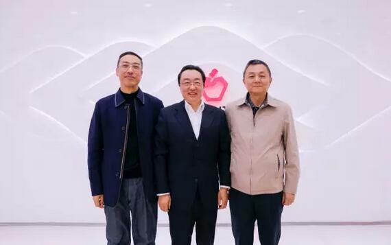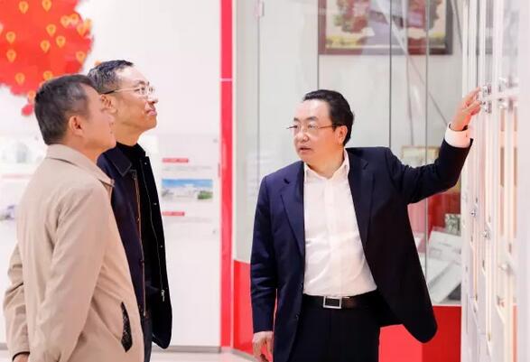省国家税务局局长张树学(左一),省地方税务局局长唐新民(右一),在董事长焦家良博士的陪同下参观调研