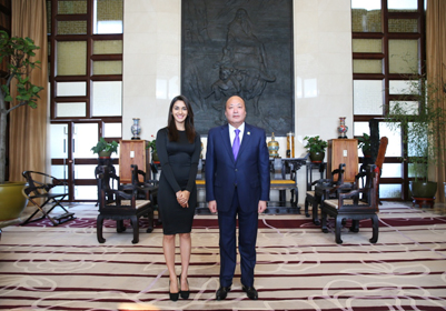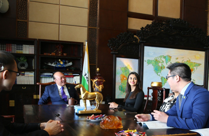 李金元董事长在会谈中首先感谢Nikita Dutta女士对天狮事业的关注,并热烈欢迎其来到天狮做客。董事长介绍了天狮22年来企业发展的概况以及一体多翼的发展战略规划,并表示天狮第三次事业腾飞正在进行品牌战略、CI/VI、产品包装的全面提升,天狮是国际化的品牌,更是全球化的事业平台,希望Nikita Dutta女士在享受天狮健康品质生活的同时,也利用自己宝莱坞明星的影响力来吸引更多的明星和年轻人关注天狮,关注健康,相信未来会有非常多的合作良机。