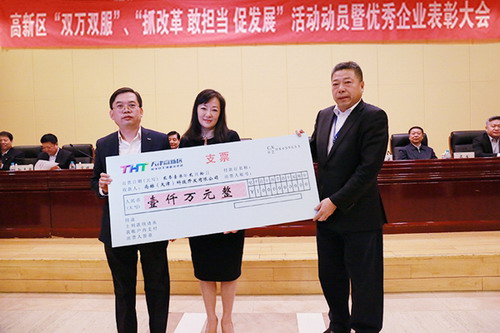 会议中,天津市委滨海高新技术产业开发区工作委员会倪祥玉书记、天津高新区管委会尹继辉主任特别为尚赫品牌颁发荣誉嘉奖,尚赫品牌陈旻君执行长接受表彰。2016年,尚赫品牌继续顺应时代发展脉搏,一如既往地秉承“诚信、稳健、踏实”的经营理念,将合法经营、规范经营、永续经营落实在品牌发展的每一步,在全面加快创新示范区的建设中,做出积极贡献,得到天津高新区的高度肯定与认可。