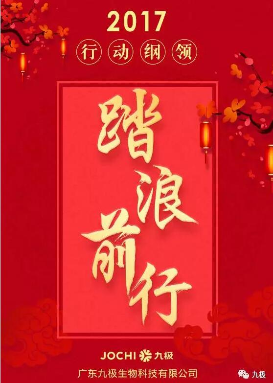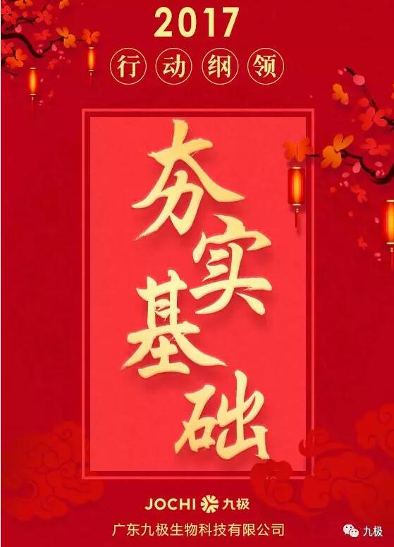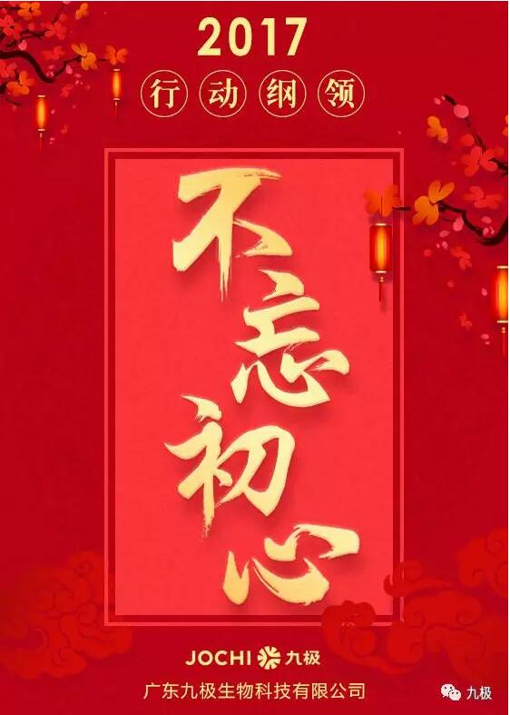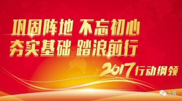 为了在2017年打下漂亮的一仗,九极制定了16字行动纲领:巩固阵地,不忘初心,夯实基础,踏浪前行,这将指引所有九极人朝着这一共同目标不断迈进。
