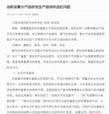 2月19日,《氢思语》刊登了大连双迪科技股份有限公司创新科技研究院李烨、肖志邦《当前富氢水产品研发生产亟待改进的问题》一文。文章发布后,在业界得到了广泛关注,点击率极高,读者纷纷留言要了解更多双迪股份富氢水技术及产品。
