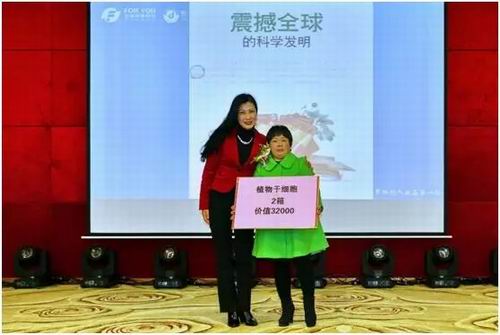 富迪公司现场把价值32,000元的植物干细胞原液捐赠给家人