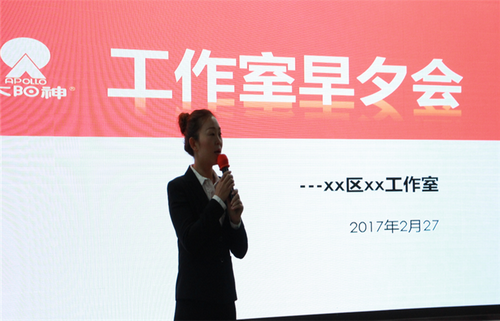 市场督导部李冰带领参会人员演绎《知识问答对抗赛式早会》