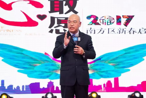 总经理罗梓豪先生致辞,做一个有爱有情怀的企业,并提出心·敢愿:打造一家360度全方位家庭健康消费平台、成为中国植物大健康的领军企业!