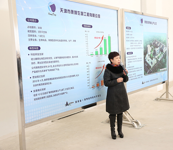 康婷公司杨琪总裁为领导们详细介绍了康婷公司近年来的发展现状。康婷公司自1996年成立以来,始终秉承着“诚实守信,求质创新”的企业核心文化,积极探索前沿科技,目前,康婷公司获授权专利共计55项。为创建大健康平台,康婷公司在赛达新兴产业园建设了占地面积268亩、总建筑面积25万平方米,集产品、研发、生产制造、仓储物流、教育培训、会议中心等为一体的康婷健康事业产业园。2017年,康婷公司将规划建设康婷三级医院,构建可持续性大健康平台,为广大群众的健康保驾护航。