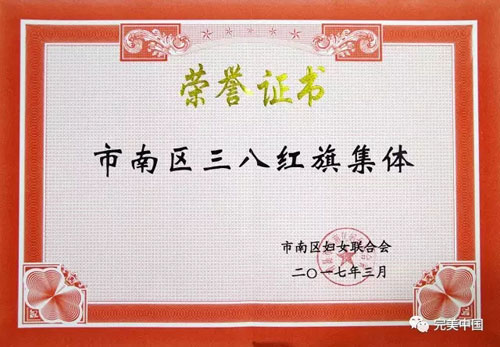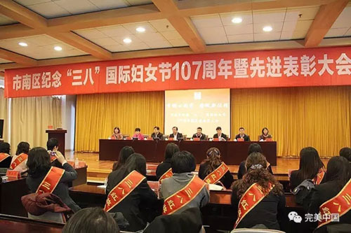 3月7日,青岛市市南区举行纪念“三八”国际妇女节107周年暨表彰大会,区委副书记张忠、副区长管寿国、政协副主席王胜山、妇联主席吴玉霞等领导,以及社会各界先进集体和个人出席了表彰大会。会上,完美青岛分公司被授予“三八红旗集体”荣誉称号。