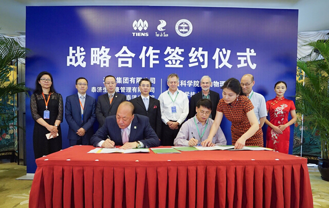 本次博鳌生物医学论坛期间,在历届亚洲博鳌论坛国家主席接见各国贵宾的国宴厅——云亭,天狮集团旗下泰济生健康管理有限公司泰济生医院与中科院生物物理研究所生物医学技术中心举行了战略签约合作仪式。在60余位著名生物医学界的学者兼专家的见证下,天狮集团董事长李金元先生、中科院生物物理研究所姬广聚教授代表双方签署战略合作协议。
