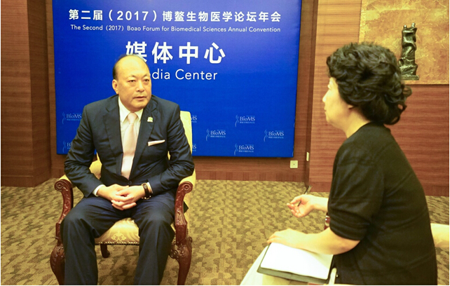 中国科学院生物物理所生物医学技术中心引领国内生物细胞治疗技术产、学、研、医协同创新,是全国科研系统实施创新驱动战略的领头羊,由其牵头主办的第二届博鳌生物医学论坛,是一个立足于生物医学技术创新与产业化,推动中国与世界各国之间协同创新与合作的交流平台,吸引了全球各国政界、商界、学术界、医疗界、投资界的名流参与,北京大学泌尿外科研究所名誉所长郭应禄、中华预防医学会会长王陇德、原中国医学科学院院长刘德培、美国国家科学院院士、弗雷德•哈金森癌症研究中心Robert N. Eisenman教授、美国国家科学院院士、斯坦福大学医学院Mark M. Davis教授、耶鲁大学医学院耶鲁癌症中心Lieping Chen教授等众多生物医学学术大咖也出席本次论坛。作为全球大健康产业的领军人物,李金元董事长受邀参加本次国际高端学术论坛,并做主题演讲。